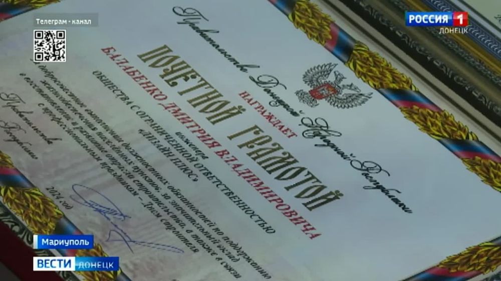 В Мариуполе накануне Дня строителя нагрудными знаками, почётными грамотами и благодарностями наградили тех, кто восстанавливает города РеспубликиСтроители съезжаются со всех уголков России и работают