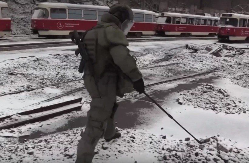 В Минобороны РФ рассказали, что военные сапёры полностью обследовали городское трамвайное депо и 25 километров путей. При этом специалистам приходится обследовать рельсы без миноискателей из-за большого количества металла. Задействовать аппаратуру удается только на прилегающих территориях.