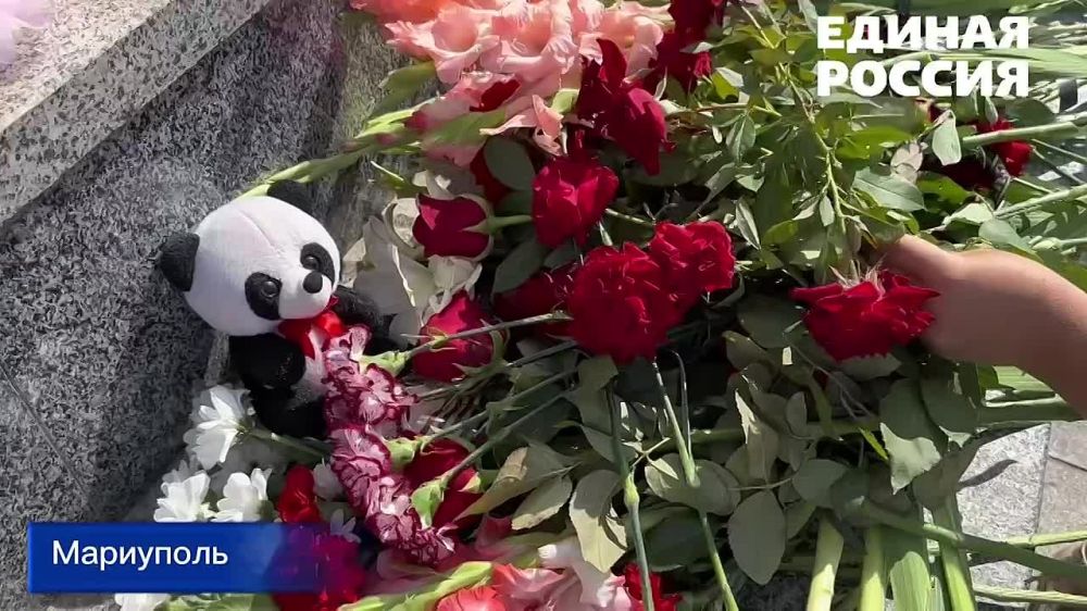 В память о каждом ребенке Единороссы Мариуполя возложили почтили память невинных жертв украинских атак минутой молчания и возложили цветы