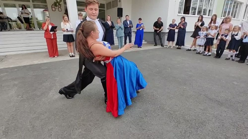 Русский вальс на празднике первого звонка в МариуполеРебята молодцы!