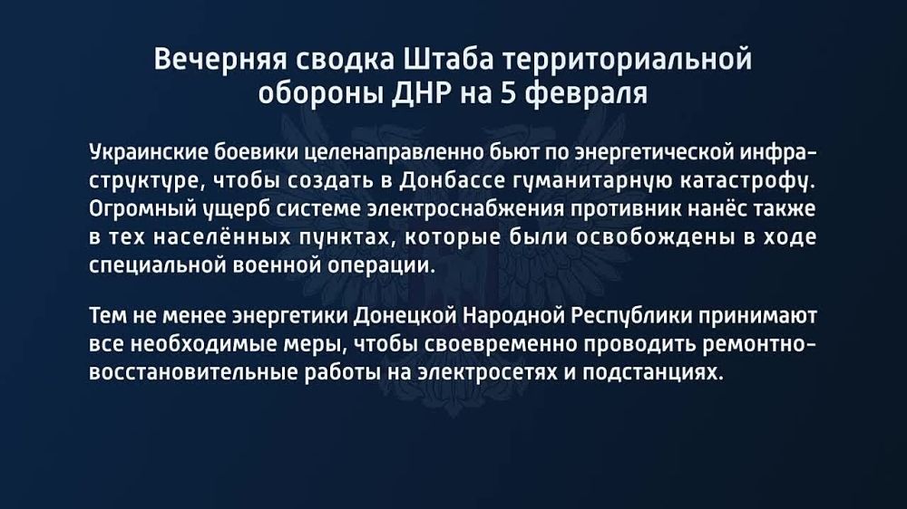 Вечерняя сводка Штаба территориальной обороны ДНР на 5 февраля 2023 года