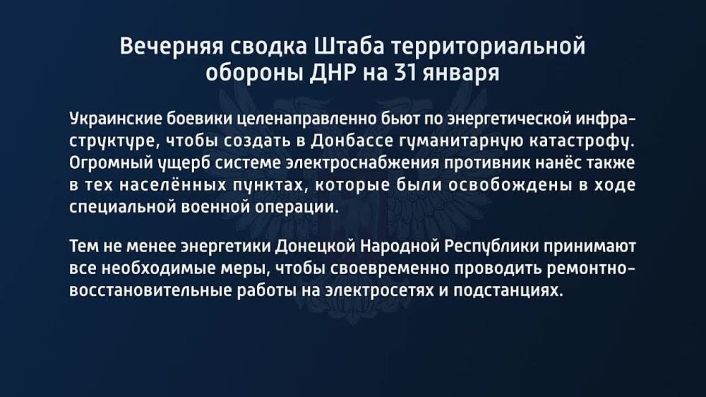 Вечерняя сводка Штаба территориальный обороны ДНР на 31 января 2023 года