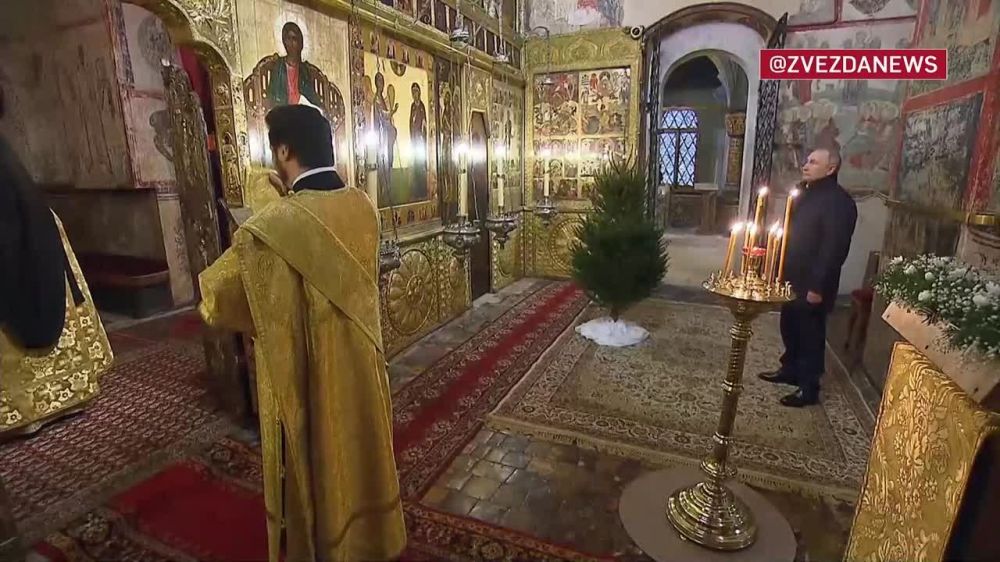 Владимир Путин в день Рождества Христова посетил богослужение в Благовещенском соборе в Московском Кремле