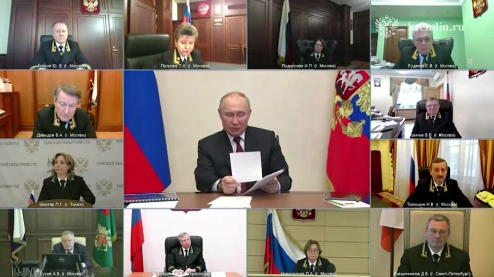 Владимир Путин в режиме видеоконференции принимает участие в совещании судей судов общей юрисдикции, военных и арбитражн