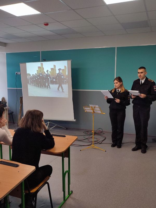 «Служу России, Служу Закону!» - под таким девизом в СШ №41 прошло профориентационное мероприятие для старшеклассников. В ходе живого общения на вопросы школьников ответили преподаватели и курсанты Волгоградской академии МВД России.