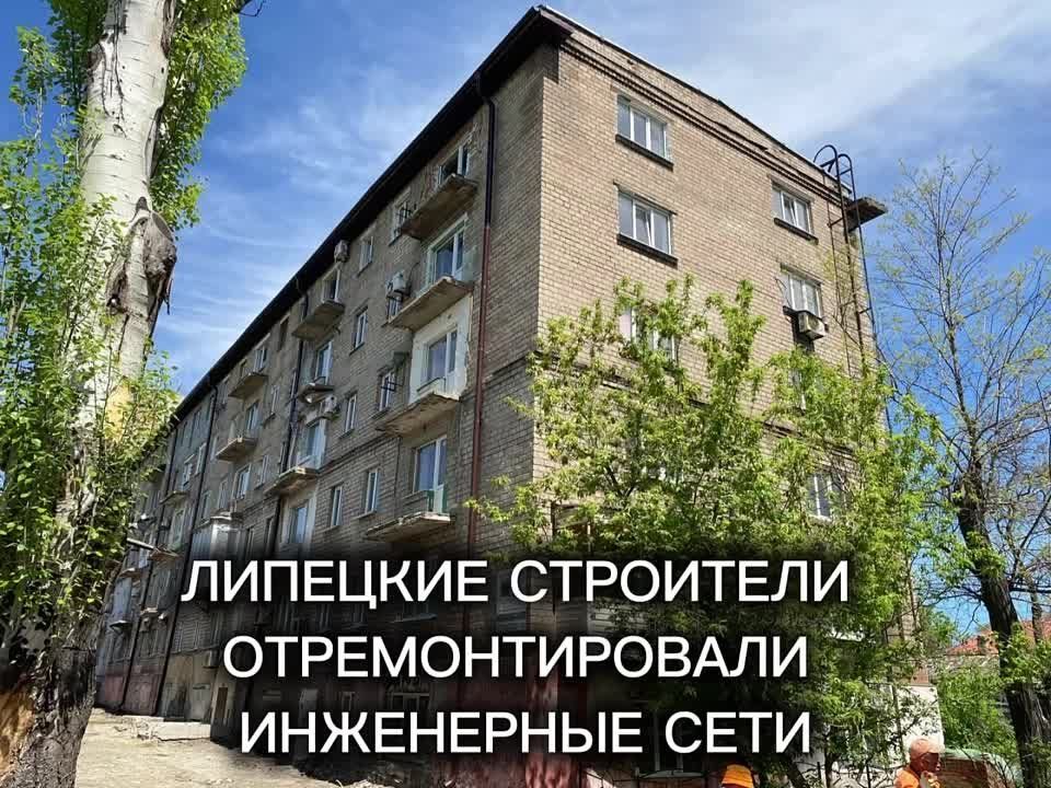 Завершается обновление фасада пятиэтажного дома в центре Мариуполя, выполненное липецкими строителями