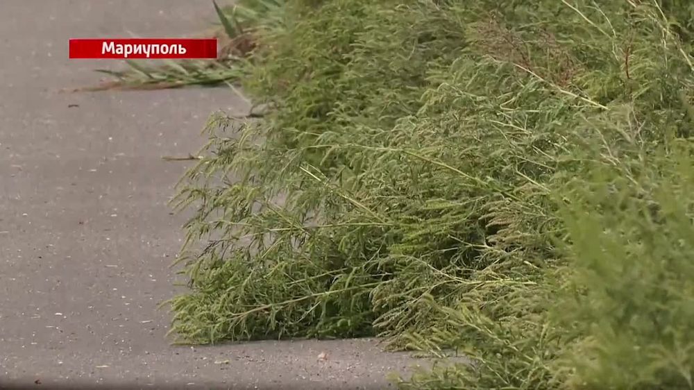 Зеленстрой занимается покосом АмброзииСотрудники Зеленстроя ведут активную работу по всему Мариуполю
