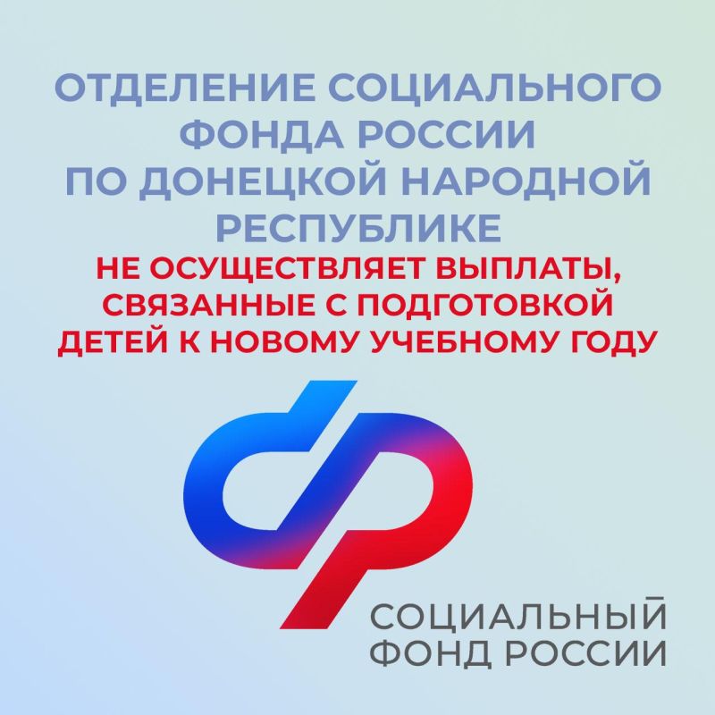 Отделение Социального фонда России по Донецкой Народной Республике информирует, что распространяемые в социальных сетях и мессенджерах публикации о выплатах на приобретение школьной формы и наборов первоклассников не соответствуют действительности.