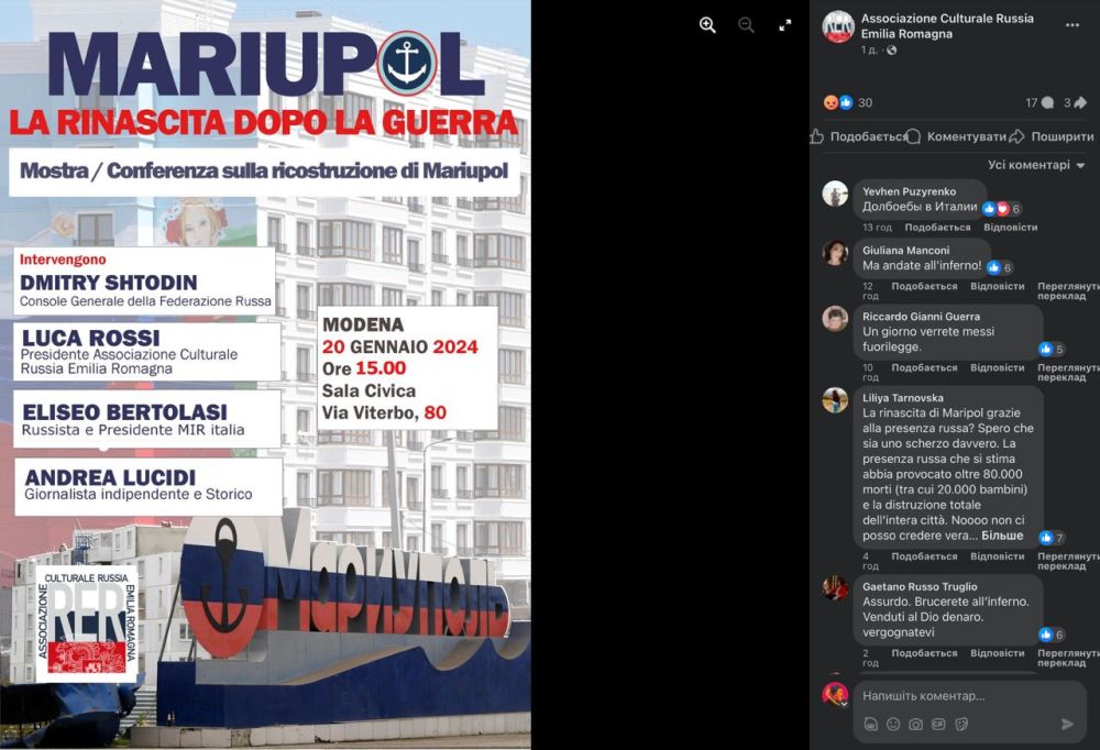 Зрада зрадная подкралась к рагулям из Европы, частью которой хутор себя ощущает. В итальянской Модене группа русофилов на 20 января наметила проведение выставки, посвященной расцвету Мариуполя в составе России.