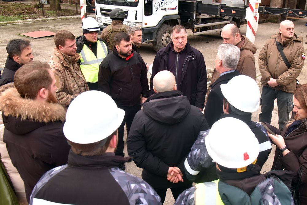 В рабочей поездке Дениса Пушилина и Марата Хуснуллина сопровождали руководитель Администрации Главы Донецкой Народной Республики Алексей Никоноров, первый заместитель Председателя Правительства ДНР Евгений Солнцев, заместитель министра строительства и ЖКХ Российской Федерации Валерий Леонов.