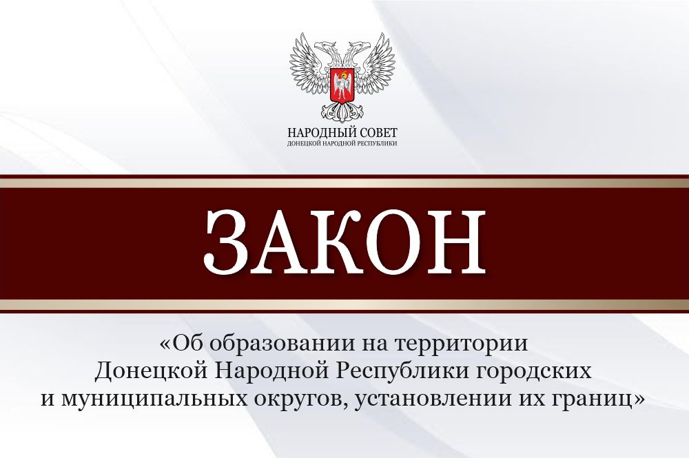 Закон Донецкой Народной Республики «Об образовании на территории Донецкой Народной Республики городских и муниципальных округов, установлении их границ» принят в двух чтениях в целом и вступает в силу со дня его официального опубликования.