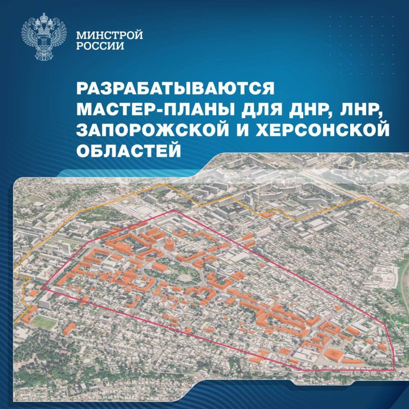 По поручению Президента ведется разработка девяти мастер-планов для городов ДНР, ЛНР, Запорожской и Херсонской областейПодведомственный Минстрою России Единый институт пространственного планирования р