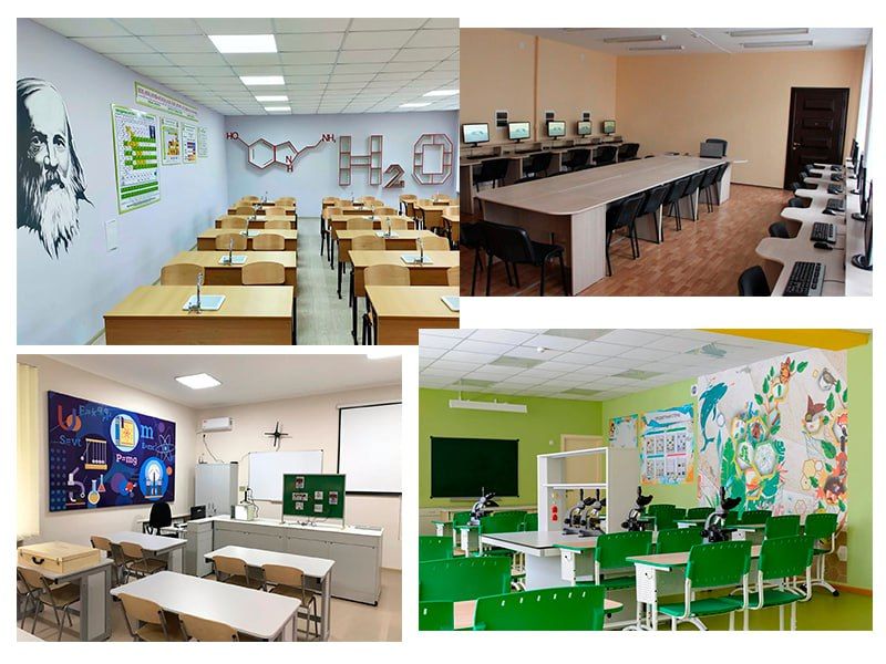 Школы получили лабораторное оборудование и реактивы, ноутбуки и интерактивные панели, комплекты школьной мебели и пособия для наглядной экспозиции.