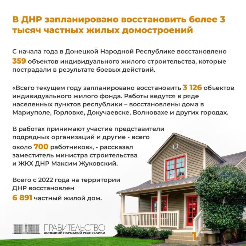 В ДНР запланировано восстановить более 3 тысяч частных жилых домостроений