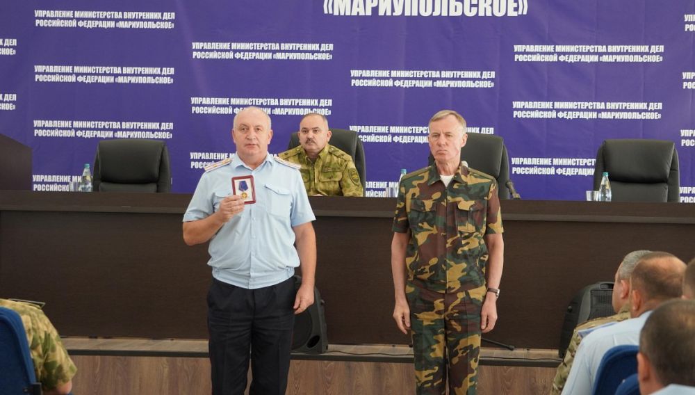 Первый заместитель Министра внутренних дел Российской Федерации вместе с министром внутренних дел по Донецкой Народной Республике генерал-майором полиции Павлом Гищенко и начальником УМВД России «Мариупольское» полковником полиции Игорем Литвиченко возложил цветы к мемориалу, воздвигнутому в память о сотрудниках полиции Донецкой Народной Республики, погибших при освобождении города Мариуполя в 2022 году.