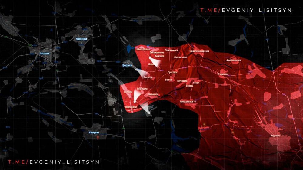 На Покровском направлении российской армии удалось взять под свой контроль села Новожеланное и Заветное. Отсюда до Селидово рукой подать - всего 5-6 километров. Также сообщают о продвижении российских сил в Гродовке, где ВС РФ подходят к центру населённого пункта. Помимо этого нашим бойцам удалось подойти вплотную к Новогродовке со стороны Николаевки. Отсюда открывается путь на Мирноград и Покровск.