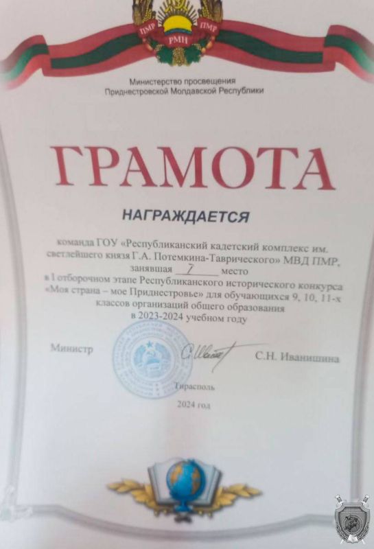 Команда кадет 29 марта победила на муниципальном этапе Республиканского исторического конкурса «Моя страна – моё Приднестровье». Он прошёл в Республиканском украинском теоретическом лицее-комплексе в Тирасполе.