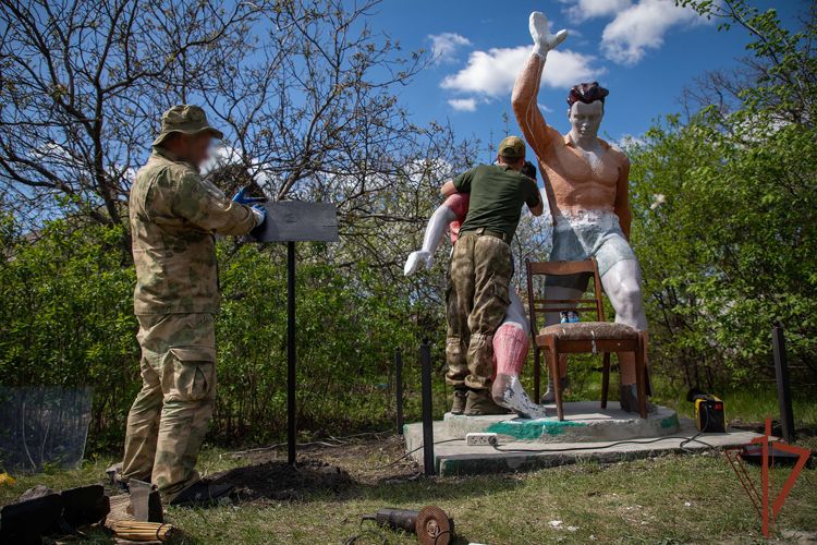 Военнослужащие реконструировали разрушившиеся от времени элементы скульптур, провели покрасочные работы, установили оградку, мяч и почтили память героических спортсменов возложением цветов.