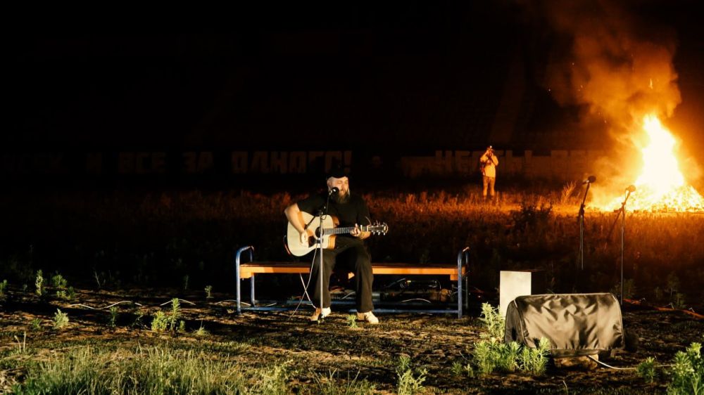 Только что закончилось выступление музыкантов перед бойцами «Эспаньолы». Подхожу к Бранимиру, прошу дать комментарий для @wargonzo. Саша не первый раз в зоне СВО, он уже неоднократно пел для бойцов, Донбасс его знает и любит. Но говорить об этом он не очень хочет: