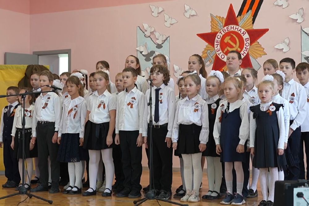 Учащиеся одной из школ города Мариуполя дали праздничный концерт для ветеранов ВОВ и военнослужащих ВС РФ в честь Дня По