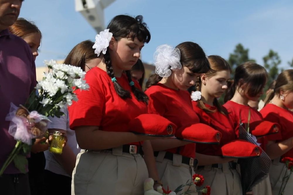 Военнослужащие, мариупольцы, представители юнармейских и студенческих движений почтили память детей Донбасса, погибших от рук украинского режима в городе Мариуполе минутой молчания. Собравшиеся возложили цветы и игрушки к временному мемориалу на центральной площади города.