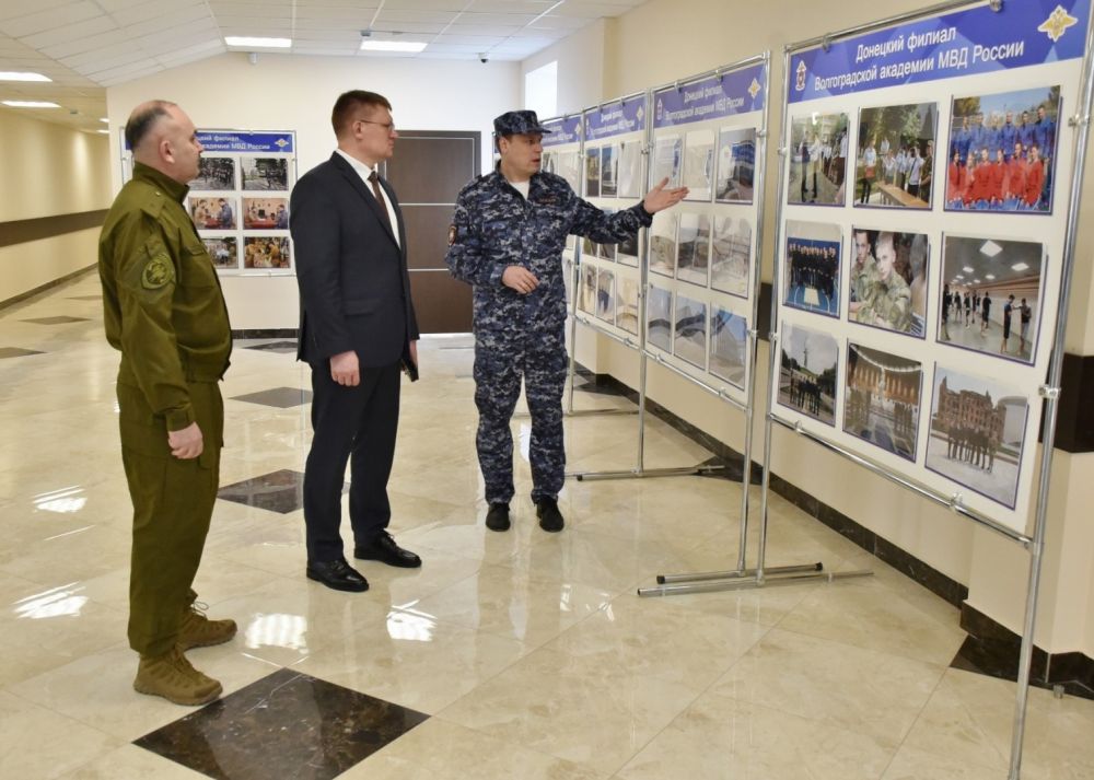 В сопровождении начальника Волгоградской академии МВД России генерал-майора полиции Романа Павленкова и Министра внутренних дел по Донецкой Народной Республике Павла Гищенко заместитель главы ведомства осмотрел учебные аудитории филиала, спортивные залы, тиры, столовую, компьютерные классы, библиотеки, места проживания курсантов, которые в новом учебном году приступят к обучению в г. Мариуполе.