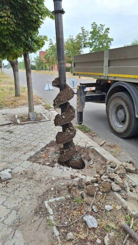 «Мариупольгорсвет» установил новые электроопоры на левобережьеВчера специалисты предприятия пробурили лунки и установили 10 новых электроопор по улице Виноградной и Комсомольскому бульвару