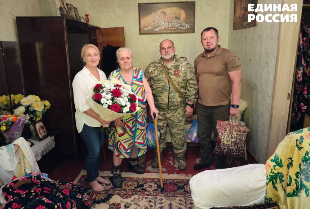 С праздником, дорогой ветеран!Поздравить замечательного человека с двойным праздником – Анну Ивановну Топекину с днем рождения и Днем освобождения Донбасса – приехали депутаты НС ДНР Юрий Сивоконенко
