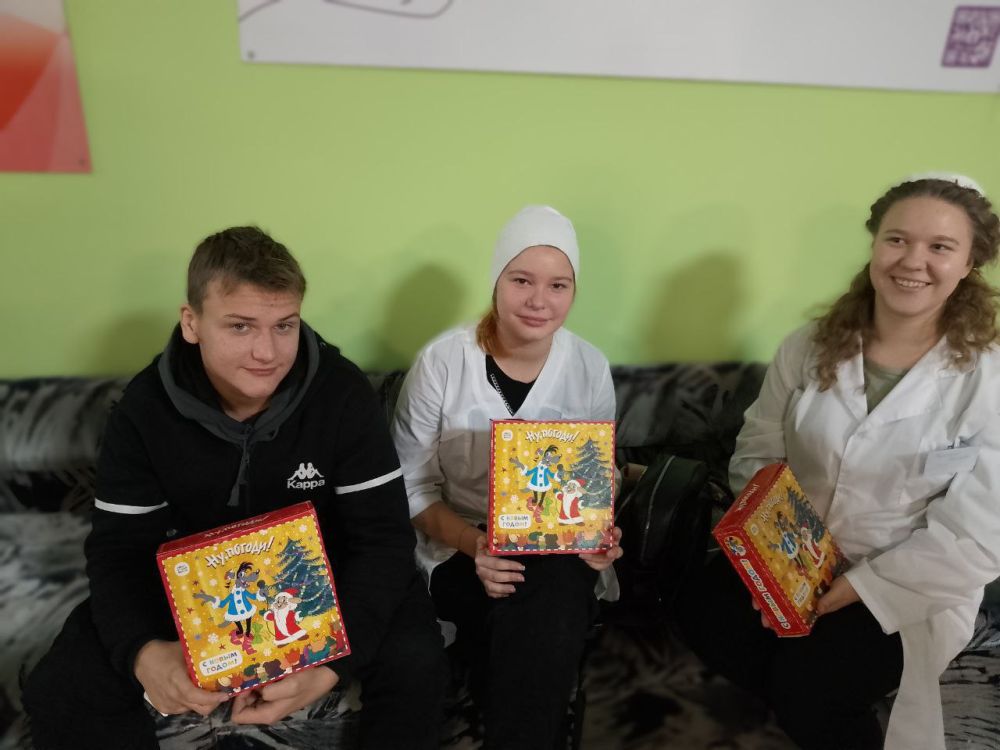 Им привезли сладкие наборы. Ведь Новый год – это тот праздник, когда мы, независимо от возраста, в душе снова становимся детьми и с удовольствие балуем себя вкусненьким.