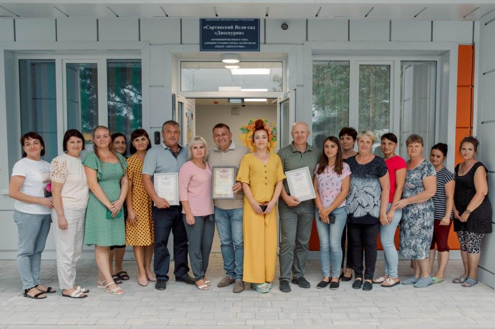 Готовность яслей-сада оценили глава Мариуполя Олег Моргун и руководитель представительства администрации губернатора Санкт-Петербурга в Мариуполе Иван Фтиц.