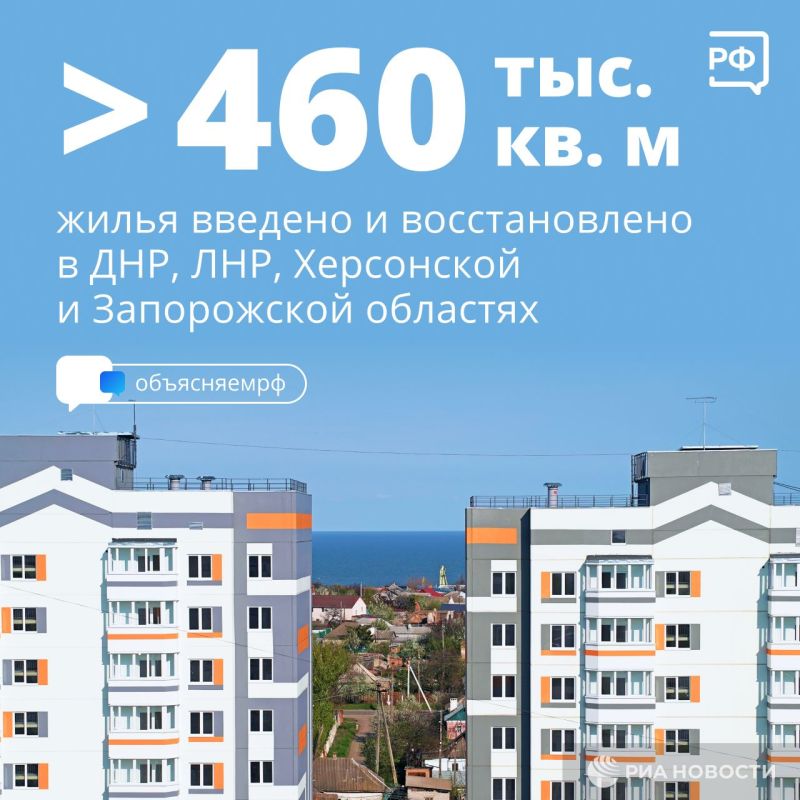 Только за первые три месяца 2023 года в новых регионах сдали более 67 тыс. кв. м жилья и восстановили многоквартирные и частные дома общей площадью 393,2 тыс. кв. м. Об этом рассказал вице-премьер Марат Хуснуллин.