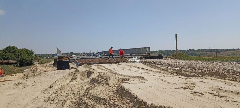 В поселке Сартана приступили к устройству подхода к строящемуся мосту через Кальмиус Мостовое сооружение готово уже на 90%