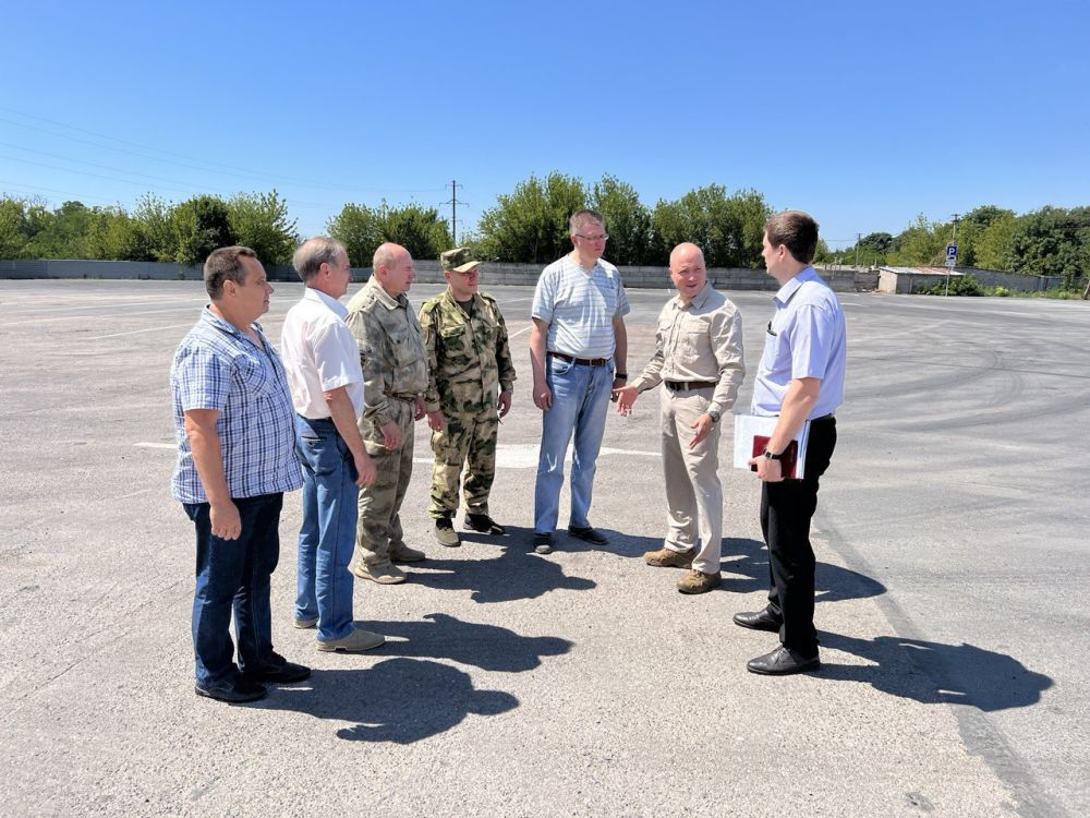 Сегодня на перехватывающей парковке на пути к пункту пропуска «Весело-Вознесенка» прошло выездное совещание с участием Министра транспорта ДНР Владимира Тужилина, заместителя начальника ГУОБДД МВД России генерал-майора полиции Олега Понарьина, сотрудников УГИБДД МВД по ДНР, представителей Логистического Центра.