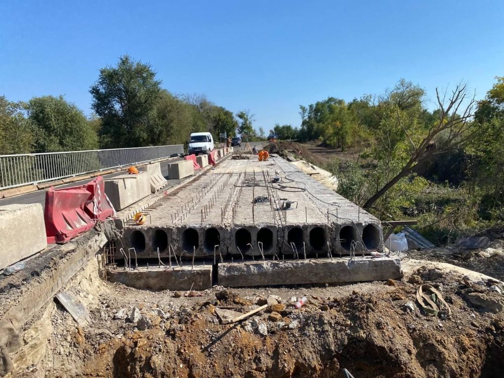 В селе Греково-Александровка приступили к армированию плиты пролетного строения на мосту через р