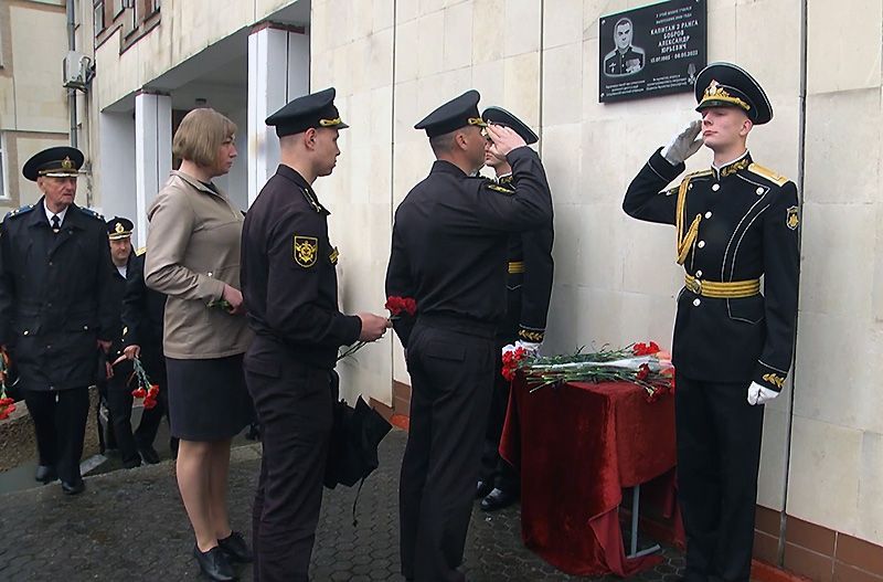 Памятную доску на фасаде учебного заведения открыли под звуки оркестра штаба Черноморского флота, а завершилась церемония прохождением роты почетного караула.