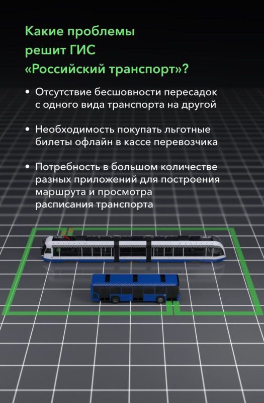 Портал «Российский транспорт» объединит ряд государственных систем: в него планируется интегрировать Автоматизированную систему льготных и субсидированных перевозок (АИС УЛСП), цифровой профиль перевозчика, ФГИС «Такси», региональные цифровые платформы, «умную» оплату проезда и региональные туристические сервисы.