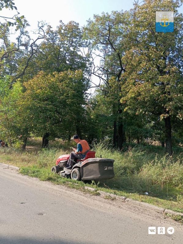 В работе специалисты задействовали самоходную газонокосилку, которая обеспечивает более равномерный травяной покров.